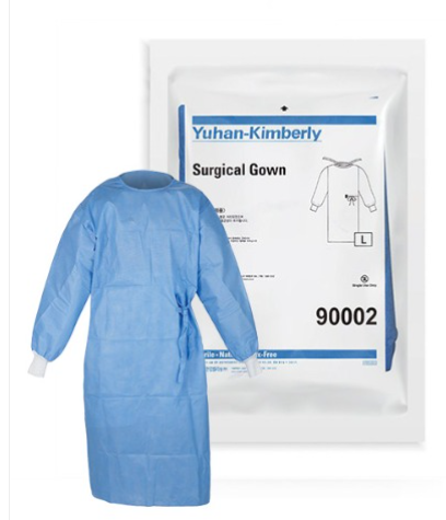 | 9 | 양쪽 손으로 각각의 구멍을 잡은 후 양쪽 손을 동시에 소매 안으로 밀어 넣어 손이 가운 소매 밖으로 나오지 않게, 양쪽 팔을 가운의 소매까지만 집어 넣는다. | 가운의 겉면은 멸균되어 있으므로 멸균상태를 유지하기 위함 |